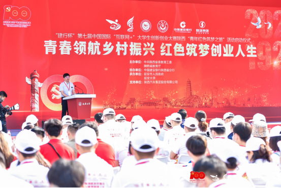 6月9日-11日,“建行杯”第七届中国国际“互联网+”大学生创新创业大赛陕西“青年红色筑梦之旅”活动启动仪式在延安市宝塔山隆重举行,陕西省委教育工委副书记陈乃霞、省教育厅副厅长朱晓渭、延安市副市长张建波,全省95所高校校级领导、师生代表,项目签约单位代表等近500人参加了本次活动。我校实践教学管理处处长黄昆龙、办公室主任吴安琪应邀参加了本次活动,陕西省委教育工委委员、省教育厅副厅长朱晓渭主持启动仪式。
