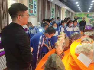 地质陈列馆藏各类矿物标本、古生物化石、典型岩矿心等,魏奥林老师热情的向前来参观的师生进行神奇地球历史发展、多彩岩矿石等知识,学生们被五颜六色的矿石所吸引,感慨地球的奇妙!