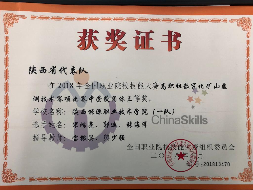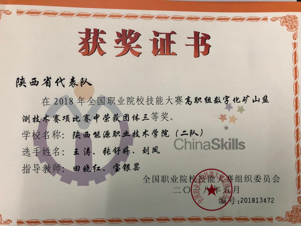 在刚刚落幕的2018年全国职业技能大赛中我校共获得5项奖励,其中二等奖1项、三等奖4项。
