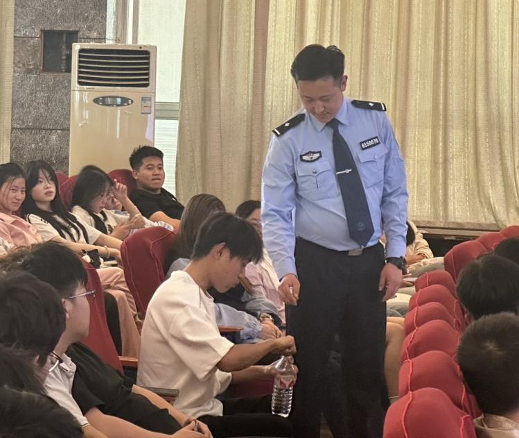 实践教学中心主任刘彦锋首先向师生介绍了本次参加宣讲警官,随后教导员高翔致辞,向同学们强调毒品的危害,提醒同学们警惕毒品陷阱,不接受陌生人食物饮料,积极学习禁毒知识,从自身做起,共同筑牢禁毒防线,守护青春与未来。