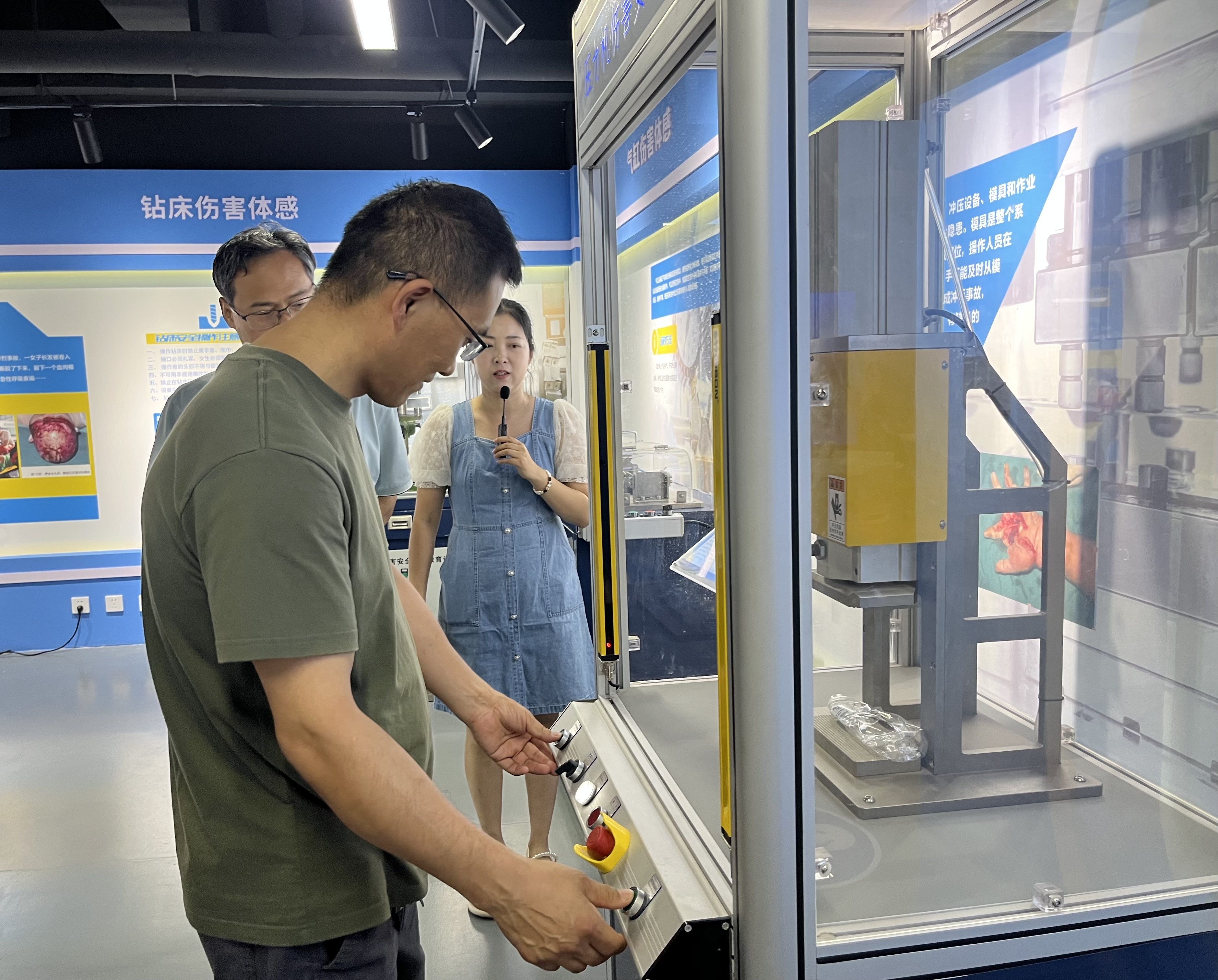 在体验馆工作人员的引领下,讲解员通过全方位、多角度的讲解和模拟演练,深入简出地介绍了实验室常见的安全风险及应对策略。党员老师们以实验室基本要求和规范为立足点,认真学习了实验室用水安全规范、用电安全规范,并在讲解员的指导下参与体验了日常模拟灭火系统、心肺复苏急救、钻床伤害体感、气缸伤害体感、冲压伤害体感、跨步电压安全体感等项目,有效掌握了关键的自救技能,大家对这种体验式学习模式给予了高度评价。