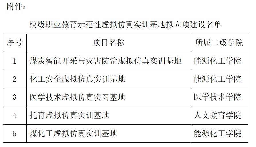 附件:校级职业教育示范性虚拟仿真实训基地拟立项建设名单