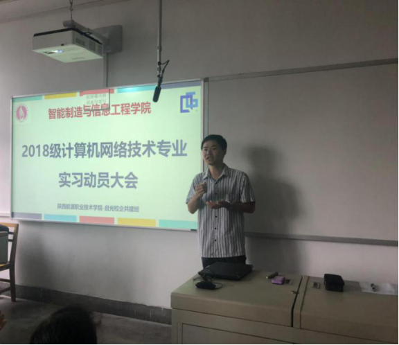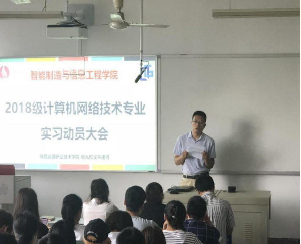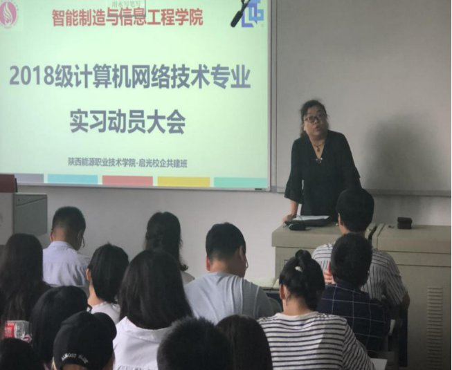 为进一步深化教育教学改革,按照校企联合培养要求914上午930智信学院在1号教学楼513召开了启光订单班实习动员会。智信学院党政班子成员综合办、教学办、学工办、企业指导教师代表及计算机网络专业2018启光班”班主任和84名学生参加会议。会议由智信学院教学办主任李智主持。