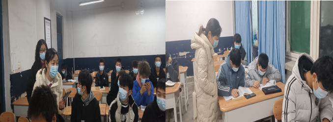 2021年12月26日晚,为确保线上班主任管理扎实有效,曹俊侠、李粒、景安琪、杨军一同深入晚自习教室,对学生班会情况进行了全面检查,共督导了32个班级。在班会检查中,曹俊侠详细了解了各班班会开展情况、晚自习出勤情况、学生晚自习学习状态以及班级纪律情况,并现场对于线上正在开班会的班主任工作予以肯定并提出要求,同时对学生疫情防控提出要求。