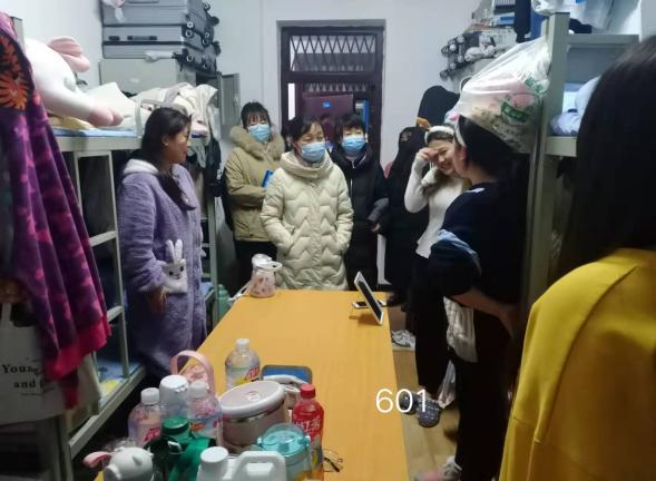 12月25日晚,曹俊侠、刘玲与辅导员一起深入4#、6#女生公寓,对22个宿舍进行走访,指出学生宿舍的安全隐患,了解生活中的困难。针对学生提出的洗澡问题,以及电梯间卫生问题,及时沟通解决。同时要求同学们积极配合防疫工作的各项部署和安排,如有困难要在第一时间联系各年级辅导员。