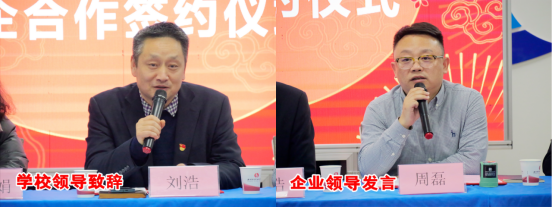 周磊代表公司发言,他首先高度赞赏试点班级学生刻苦的学习能力、认真的工作态度和团结友爱的人格品质;他希望试点班级的学生能够虚心好学、吃苦耐劳、戒骄戒躁,并表示将在试点班级学生中择优录取多名学生,成为企业的正式员工。