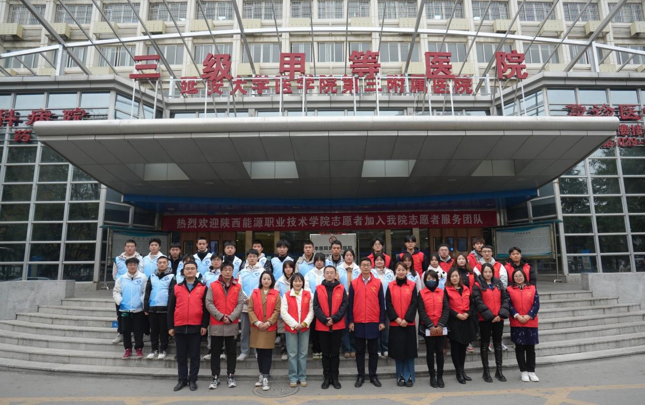 11月25日上午,我校携手延安大学咸阳医院成立的“医道同行”志愿者服务队启动仪式,在延安大学咸阳医院顺利举行。出席仪式的有延安大学咸阳医院行政副院长兼工会主席沙宁、院长助理杨敏、人力资源部副部长兼团委书记刘欢、设备器材部副部长王琪等职能部门人员,我校智信学院党总支副书记孟卓,教师杨莹、罗丹妮、韩飞、郝宇刚,及智能医疗装备技术专业“医道同行”志愿团队近30名志愿者。仪式由延安大学咸阳医院办公室主任李鹏主持。