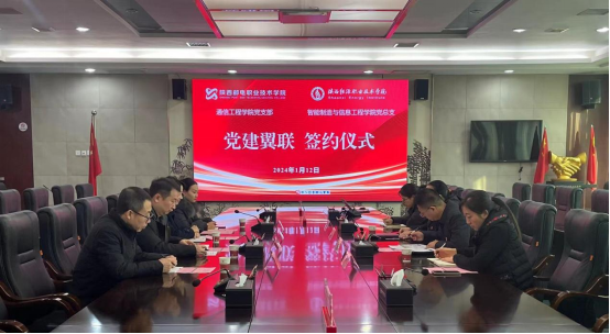 为切实发挥党建引领作用,实现党组织资源共享、优势互补,2024年1月12日,我校智信学院党总支与陕西邮电职业技术学院通信工程学院党支部在办公楼第三会议室开展了“党建翼联”活动,并签署“党建翼联”合作书。陕西邮电职业技术学院通信工程学院党支部书记韩文理、副书记杨广驰、纪检委员雷蕾、青年委员杨芝,我校智信学院党总支书记冯帅、副书记贾永军、纪检委员黄俊梅、宣传委员王茜参加活动。