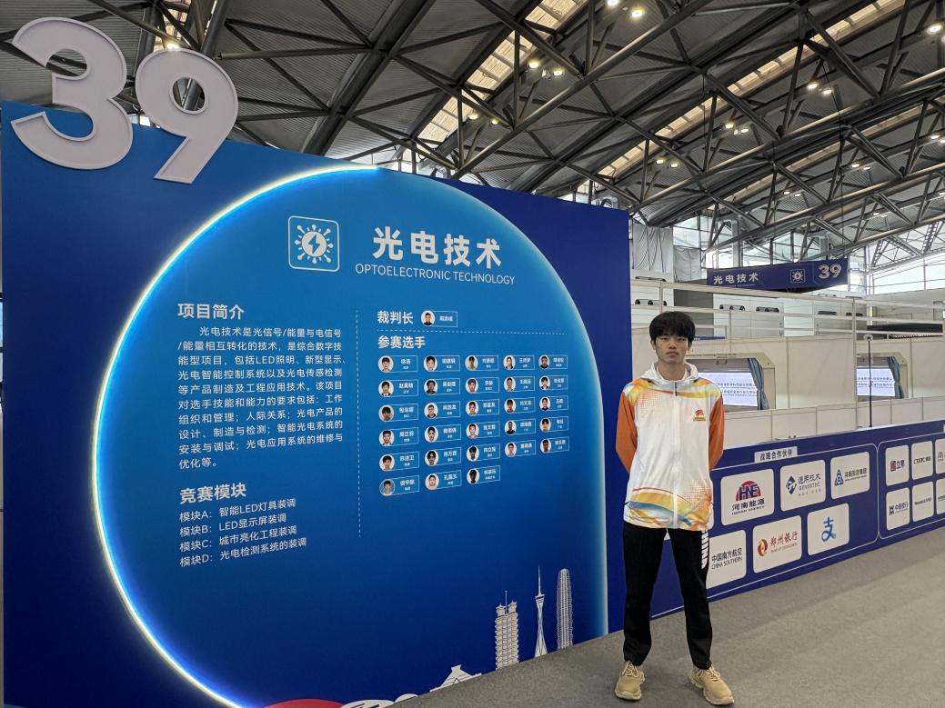 9月19日至23日,第三届全国职业技能大赛在河南郑州举办,本届大赛以“技能照亮前程”为主题,共设置106个竞赛项目,共有来自全国35个代表团的3420名选手同场竞技。新型能源学院教师黄俊梅、柳剑刚担任指导教师,带领选手侯宇航代表陕西省参加光电技术(世赛)赛项的角逐,凭借娴熟的实操技能在激烈角逐中脱颖而出,获得该赛项优胜奖。