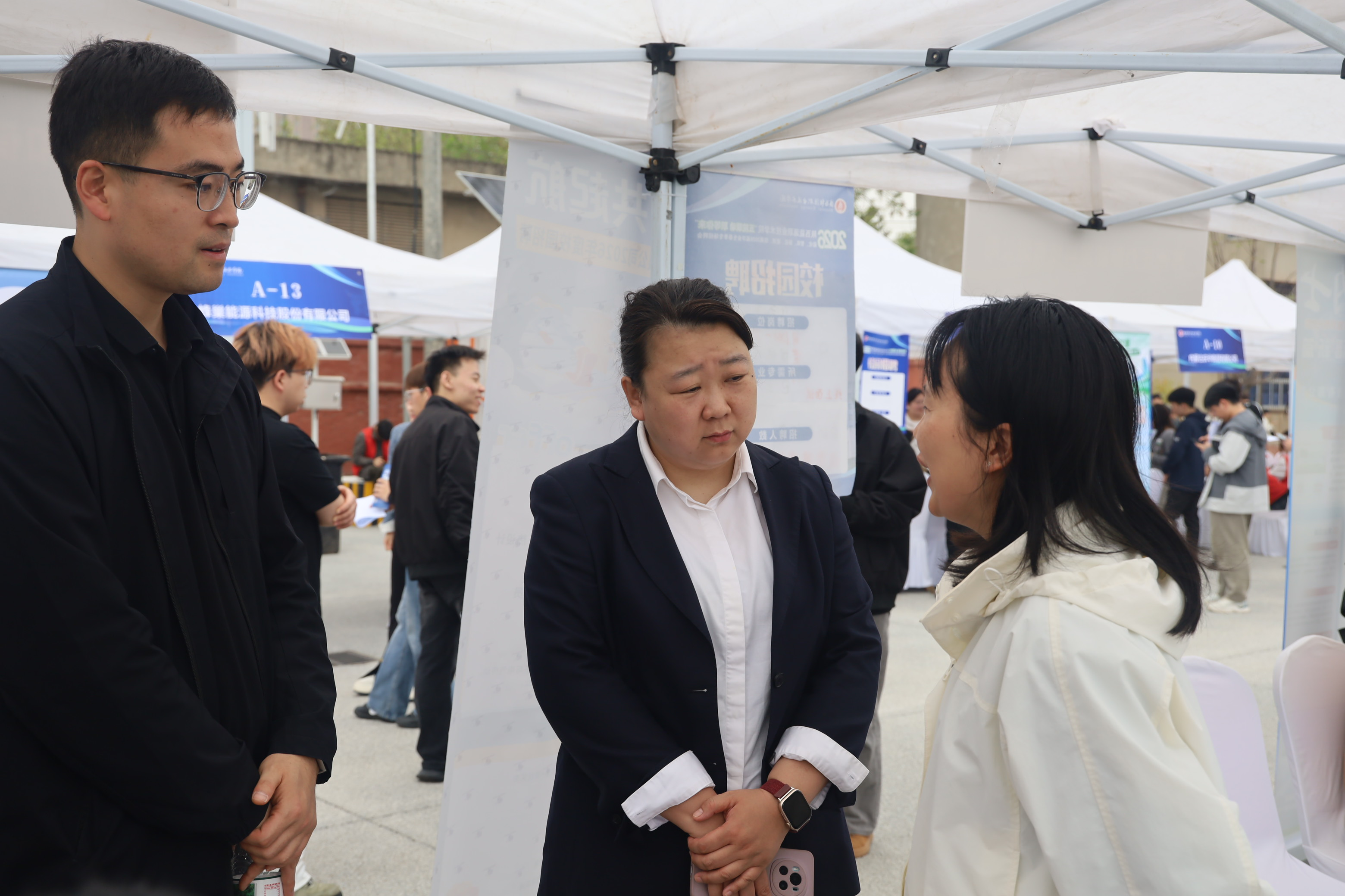 4月10日,由新型能源学院联合能源化工学院、智能机电学院、建筑测绘学院、信息商务学院共同举办的“五院联动,职等您来”2026届毕业生春季专场招聘会在咸阳校区顺利举行。本次招聘会精准锚定工科专业领域人才需求,吸引行业内53家优质企业齐聚现场,为学校2026届、2027届学子搭建起高效便捷的就业对接桥梁。新型能源学院党总支副书记冯帅、副院长黄俊梅、大二、大三班主任、实习指导教师和辅导员亲临现场,与用人单位、毕业生深入沟通交流,精准把握行业人才需求,悉心指导学生求职就业。