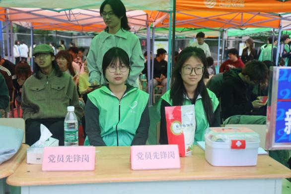 与此同时,党员先锋队志愿者们身着统一志愿服,以饱满的热情坚守在现场服务岗位。他们是赛场边最坚实的后盾,是秩序维护者、是后勤保障员,用实际行动践行党员初心,将“先锋引领、服务师生”的学院党建特色融入运动会全过程,成为开幕式上一道温暖而亮眼的风景线。