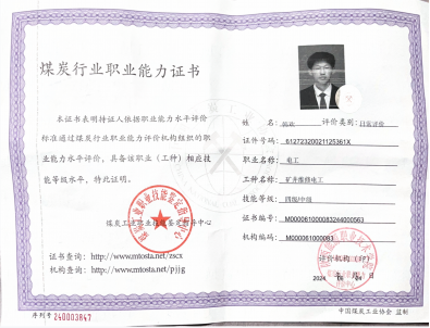 5.煤炭行业职业能力证书:矿井维修电工、综采维修电工