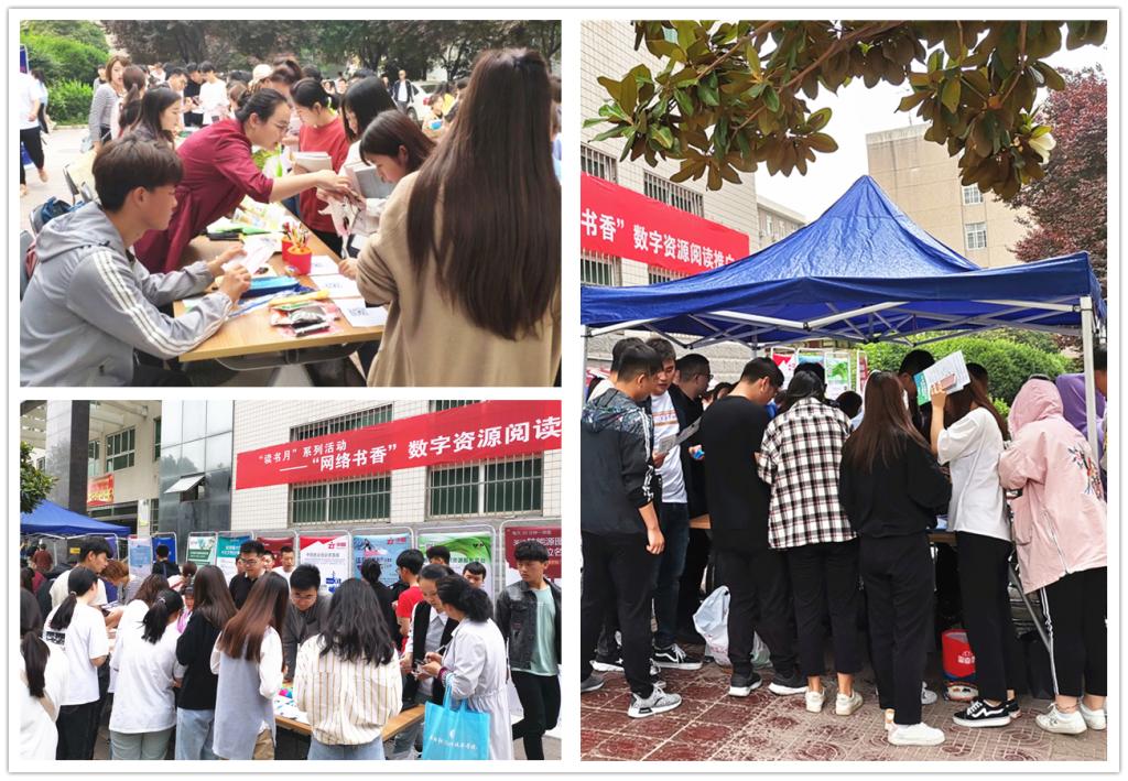 2019年5月16日,图书馆在我校培训楼前举办了“书香伴我成长,阅读圆我梦想”为主题的“网络书香”数字资源阅读推广活动。此次活动由图书馆主办,电子数据商中国知网、超星电子图书、百度文库、万方医学网、西安中图、悦听有声数字图书馆、维普智立方、正保视频数据库、方正阿帕比承办。