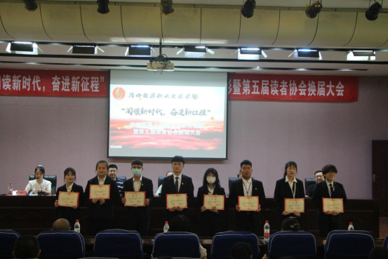 6月7日下午,“阅读新时代,奋进新征程”陕能院第六届读书月活动表彰暨第五届读者协会换届大会在实训楼6楼报告厅举行。副校长李耀辉,图书馆、校团委学生社团管理部负责人、图书馆全体老师及读者协会成员代表200余人参会,会议由图书馆办公室主任何柳主持。