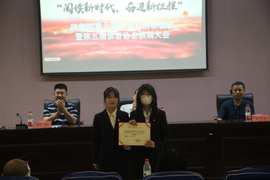 大会分为两个阶段,第一阶段为表彰会,图书馆馆长刘涛宣读表彰文件,对读书月活动进行总结。他表示,图书馆结合新时期读者的阅读形式进行了阅读推广方式的创新,本届读书月共开展了“爱检索 得新知”CNKI信息素养大赛、“书香绕绕 情满能院”图书募集捐赠、“书脸秀”、“我见证中国力量”优谷朗读亭经典阅读朗诵、“名著名家”知识问答挑战赛、“星月征途,与影相随”主题观影、陕能院第二届“载知行千里,辨声漫能院”辩论赛、“落笔生花,香满能院”第一届陕能院“金笔杆”文稿大赛八项活动,各项活动参加的师生读者总数达到2000余人次,获奖人数达230人,他希望全体馆员与读协成员能在活动中不断成长,总结经验,将以后的活动办得更精彩、更出色,为校园文化建设贡献力量。