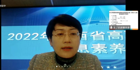 随后,陕西工业职业技术学院图书馆副馆长、陕西省赛组委会秘书长王丁宣读了《2022年陕西省高职高专院校信息素养大赛学生个人赛 指导意见》,强调了《考场注意事项》。