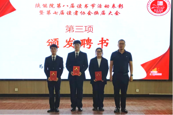 6月12日下午,“为中华民族伟大复兴而读书”陕能院第八届读书节活动表彰暨第七届读者协会换届大会在实训楼六楼报告厅举行。学校副校长李耀辉、图书馆、学工部、校团委负责人及师生代表300余人参会。