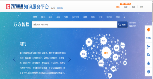 万方数据知识服务平台检索界面: