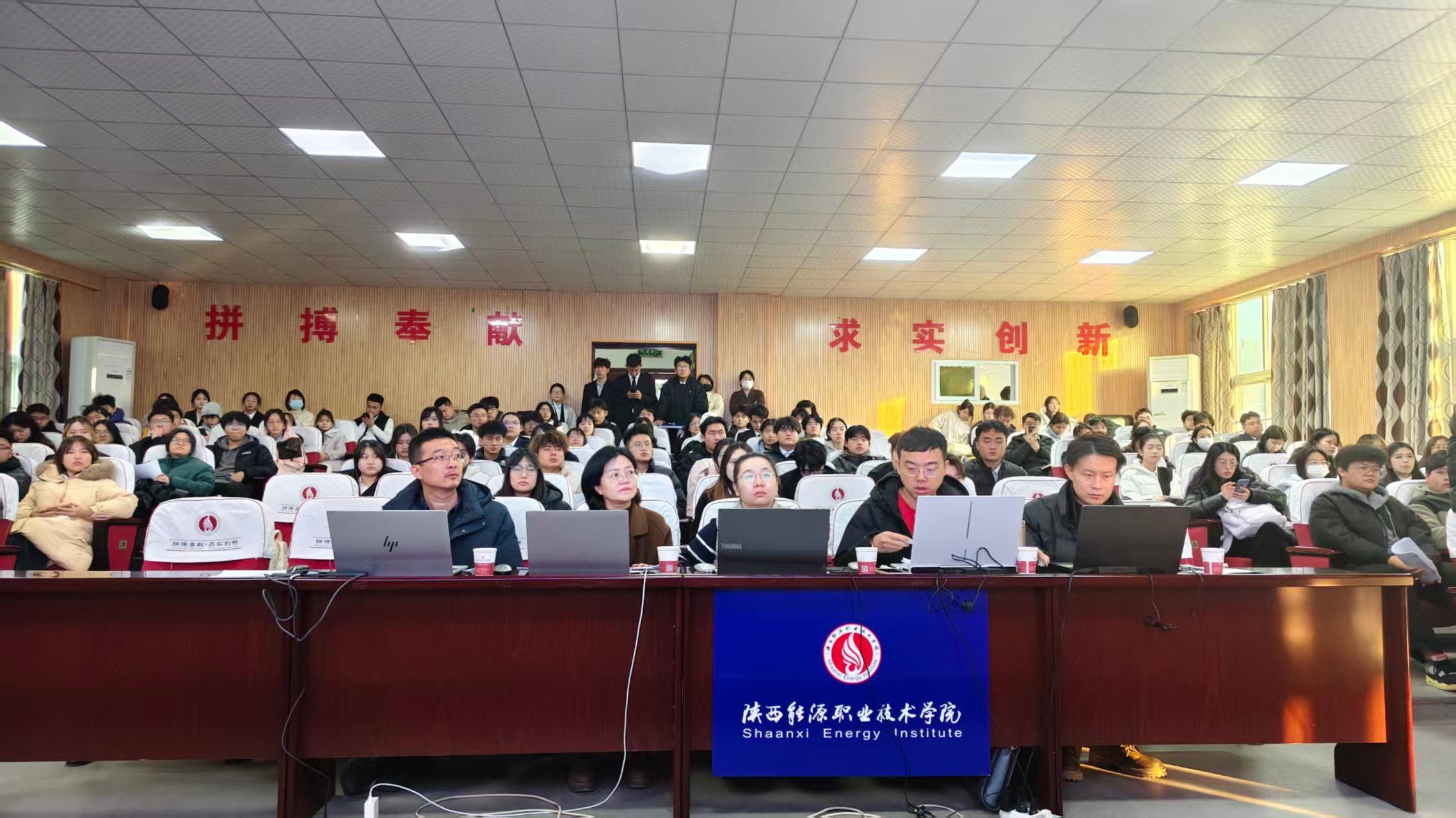 为增强我校学生的创新实践能力,选拔优秀项目,提升参赛项目质量,2025年12月4日,我校2026年“挑战杯”复赛评审会在文林大讲堂组织召开,此次复赛邀请“挑战杯”竞赛校外专家五名担任评审,各项目组团队成员及指导教师一百余名参加此次评审会。评审会由团委副书记郭少婷主持。