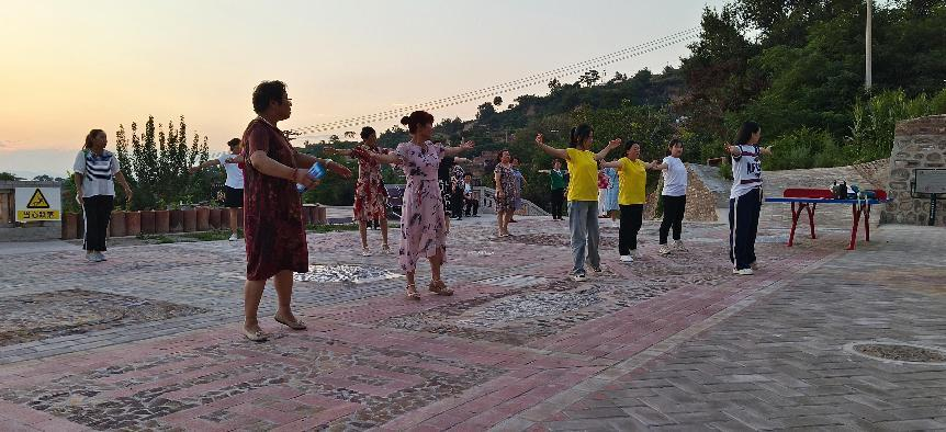 通过实地调研,团队成员发现陈炉镇当地居民多为老年人,为丰富村民的业余生活,突出陈炉镇浓厚的耀瓷文化气息,7月17日—7月20日晚7点,指导教师韩剑以“兰花碗”为道具在文化广场带领村民开展广场舞教学活动。