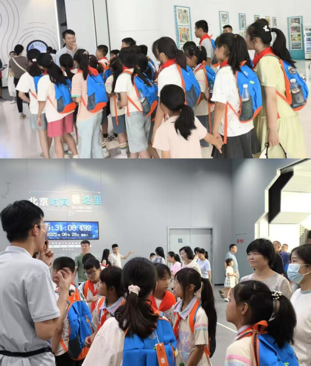 在二楼,“硬核力量”展区的大国重器与前沿科技成果令孩子们惊叹不已。志愿者讲述的科技成就故事,激发了孩子们的民族自豪感。而“文明跃迁”展区则以时间脉络串联起人类科技文明的发展历程。
