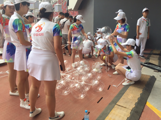 【现场志愿服务组协助制作道具】
