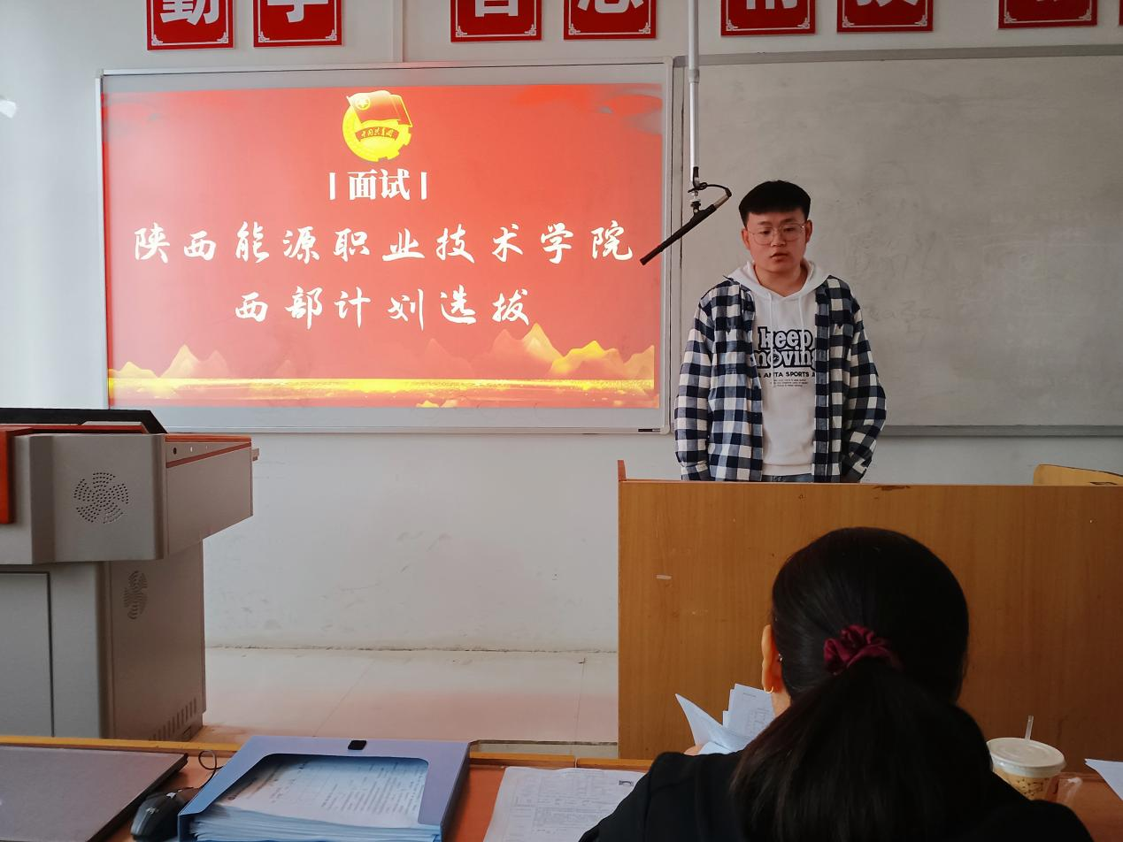 为贯彻落实党的二十大精神,全面贯彻落实国家援建西部的号召,加强新时代青年对于西部计划的认识,勉励青年以志愿者为榜样,扎根西部,服务西部,进一步使青年融入建设祖国的事业中促使青年红色主义价值观更深层次扎根心中,成为新时代新中国的新一代接班人。陕西能源职业技术学院校团委于2023年5月6日上午9点在教学楼709教室开展了2023年大学生志愿服务西部计划选拔工作。