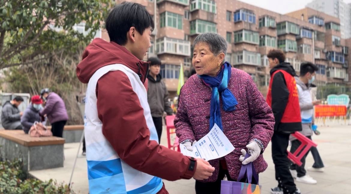 医学技术学院健康“医+1”志愿服务队在咸阳市三普社区搭建义诊区域,为市民提供血压、血糖测量等健康服务。志愿者们凭借扎实的专业素养,耐心询问居民身体状况,细致讲解健康知识,提供个性化的饮食与运动建议。口腔专业的同学们还化身“口腔健康小卫士”,现场演示巴氏刷牙法,传授科学刷牙技巧,帮助居民掌握正确的口腔护理方法。此次活动不仅提升了居民的健康意识,也让学生们在实践中深化了对“奉献、友爱、互助、进步”志愿服务精神的理解。