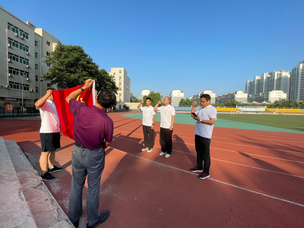 活动中,大家手持清洁工具,将散落在草坪、跑道、篮球场、足球场和排球场上的塑料袋、烟头、废纸等抛弃物清除干净。清理时,大家不怕脏,不怕累,历经近一个小时的辛勤劳动,将运动场卫生彻底清理干净。看到自己劳动的成果,党员们由衷的感到欣慰,纷纷表示希望通过自己的实际行动,倡导生态环保,争做文明市民、文明职工,共同维护美好校园。同时,按照组织要求,新入党的2位同志高海、赵东面向党旗,握紧右拳,在支部书记牛大刚的领誓下,郑重宣誓,向党组织表达自己坚定的决心和不变的信念。