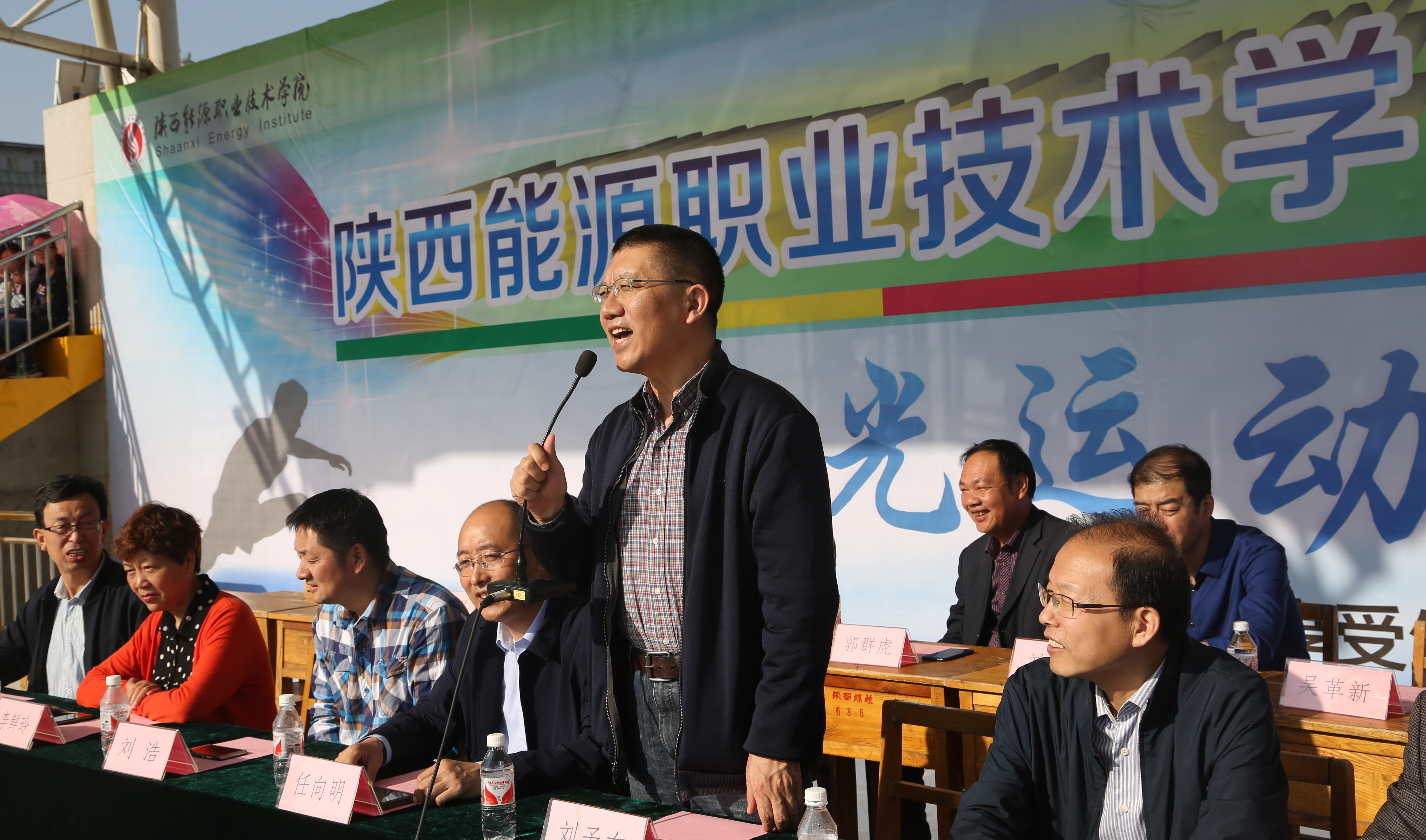 我校第十五届田径运动会于4月19日-20日顺利召开,校长刘予东、校党委副书记郭开龙、副校长李耀辉、副校长赵龙波及各学院、部门负责人出席了运会开幕式,开幕式由学校党政办任向明主任主持。