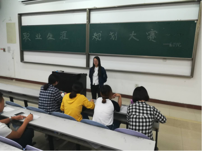 为了明确作为大一新生的我们,应该怎样才能让自己的大学生活过得更加充实,在老师提出以“职业生涯规划”为主题0,举办一次活动的建议下,经过将近一周的精心策划和准备,于2018年5月10日晚上,在西一教室里,举行了一场由医学院大一新生组织策划的一场活动。