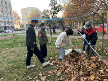 所有参加人员于15:40在教学楼下集合完毕,进行了简单的分组。随后,同学们马上进入了各自的负责区域,大面积落叶扫起来堆在树脚,然后用编织袋运往指定垃圾堆。经过两个多小时的艰苦奋战,校园内的落叶已被全部清理。