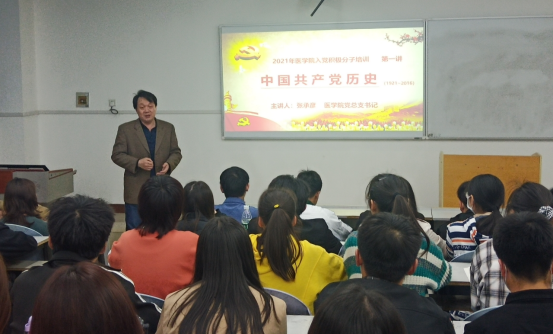 根据医学院学工支部入党积极分子初级党课教学安排,2021年4月7日下午和4月8日上午,医学院党总支书记张承彦以“中国共产党的历史”为主题,向我院咸阳校区和临潼校区全体入党积极分子共计201人讲授党课。