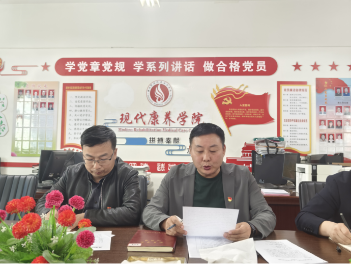 2024年4月8日,现代康养学院党总支理论中心组在办公楼409召开集体学习会议,本次会议主题为“学思践悟新思想,奋楫笃行新启程”。学习会由党总支书记唐恭贺主持,学院党总支理论中心组全体成员参加会议。