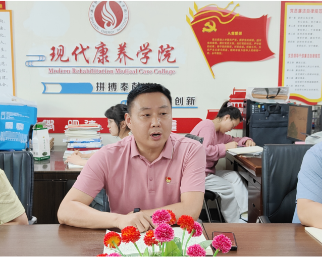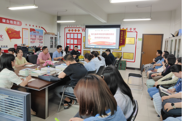 为进一步加强学院教职工遵规守纪的思想意识,切实加强党风廉政建设,牢固树立“四个意识”,以党建促专建,将党纪学习教育与教学实践相结合,从而更好地推动全面从严治党向纵深发展,为学院实现高质量发展提供保障。5月8日下午,现代康养学院在409会议室以线上、线下相结合的形式,组织召开学院党风廉政建设暨师德师风推进会。学院党政领导班子、全体党员教师参加会议,会议由学院党总支书记唐恭贺主持。