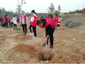 上午十时,志愿者迈着整齐的步伐走进园区,首先,在园区负责人的带领下参观了农业生态园。观看了组培室,领略了先进生物技术,并近距离和孔雀进行了接触。接下来进入今天的主题活动,三五人一组,扛树苗,抬水挖坑,一片繁忙景象,各组在无形中的形成了比赛模式,生怕自己组落下,人多力量大,不一会一行、一片整齐的树苗就站在那里了,志愿者们认真的拍土、踩实、浇水,每一个细节都是那么的认真,给小树一个温暖安全的新家。与此同时,一部分志愿者还为小花安了新家,从小家搬到大家。树木成片,绿意盎然,花草向阳,喜笑颜开!植树现场,全体同学精神抖擞,干的热火朝天,有的人即使没有拿到工具,也会用手挖着坑,丝毫不介意自己的手会被弄脏弄破,还有的没有工具,也没有树没有水壶,会帮忙看看树歪了没有,坑大小合适不,每个人都积极参与。经过一上午的劳动,同学们有的鞋子变得泥乎乎的,裤子沾着泥点和土灰,由于太用力的关系,有的同学们手上也都长出了水泡 ,但是同学们看到自己种的小树在风中摇曳着都忘记了劳累,心中洋溢着说不出的喜悦和自豪,最后同学们在自己载种的小树旁拍照留念,希望记住这有意义的一天。