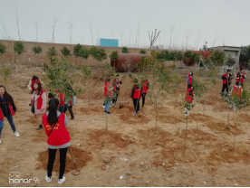3月10日志愿者 在学校集合 ,经过半个多小时的步程终于到达了西石村绿色基地。虽然已经进入3月份,但还是有丝丝寒意不断袭来。经过工作人员的一番讲解后 ,同学们有序的加入了植树活动的行列中。
