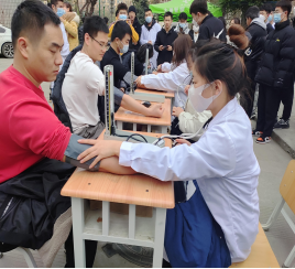 口腔专业学生为小朋友们检查牙齿,向小朋友们讲解牙齿健康知识,教小朋友正确刷牙方法;康复专业学生为师生测量血压、颈肩按摩、宣传冬季传染病预防知识;美容专业学生为师生修眉,科普基础的化妆技巧;药学专业学生现场发放自制手工皂,并介绍手工皂的制作过程,活动现场非常热闹。学生通过志愿服务活动巩固了专业知识,用热情的服务赢得了师生的好评。