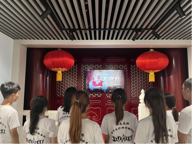 在习仲勋纪念馆,队员们浏览了许多照片、实物资料,了解了少年习仲勋的成长故事,通过讲解员的细致讲解,了解到习仲勋等老一辈无产阶级革命家在陕甘边一带开展革命活动的过程,观看了纪录片《群众领袖习仲勋》,深刻感受到他们为新中国的建立、建设和中国改革开放事业发展作出的卓越功勋,被他们忠贞不渝、百折不挠的革命精神,心系群众、为民谋利的家国情怀深深打动,被习仲勋同志“天天战斗,天天快乐;奋斗一生,快乐一生”的精神所振奋和鼓舞,被先辈们为党和人民的事业鞠躬尽瘁、敢于担当的革命情操所感动。