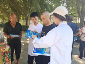 义诊结束后,实践队员为村民发放了我校2023年高考招生简章和学生资助政策,介绍了学校情况、优势学科、师资力量、就业率等情况。