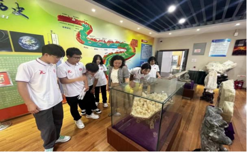 此外,实践队员们还参观了学校地质陈列馆。馆内陈列着学校建校以来师生野外采集、企业和校友捐赠的各类地质类标本。调研团成员们通过参观领略到矿物晶体曼妙奇异的自然形态和特有的性质,也知晓了煤炭和其他矿产是大自然赋予我们的瑰宝。