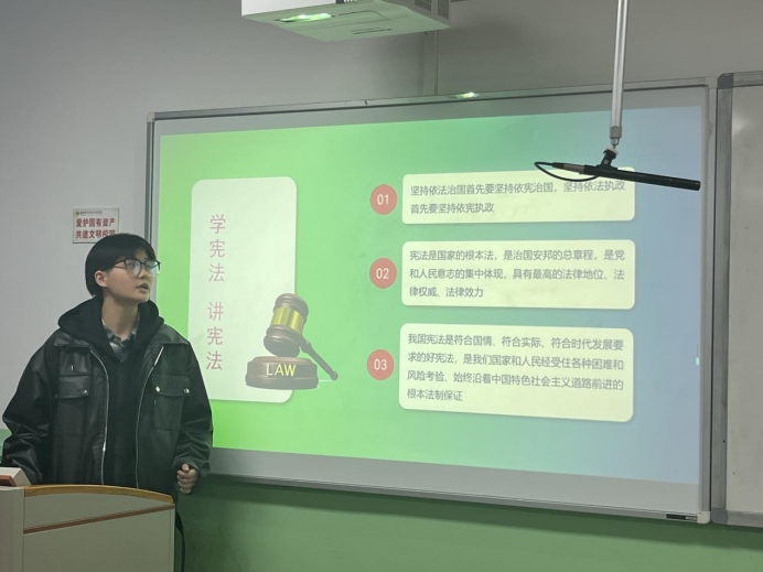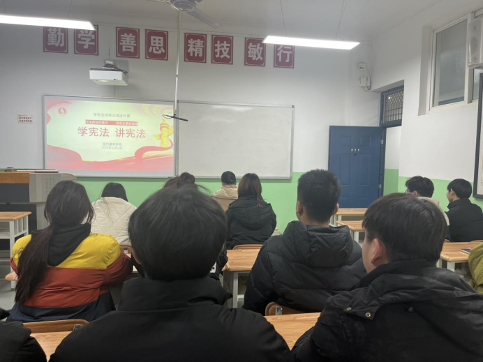 为深入学习贯彻落实习近平法治思想,进一步加强大学生宪法法治宣传教育,陕西能源职业技术学院现代康养学院于2023年12月7日晚,举办了“学宪法 讲宪法”演讲活动。此次比赛同学们围绕宪法相关规定,从社会热点、案例故事、自身体会等方面切入,讲述自己学习宪法法治知识、树立法治意识的心得体会。