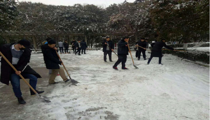 2018年1月5日,医学院学生党支部联合后勤保障处带领学生为临潼校区清扫积雪,在这个严冬第一场雪给全校师生带来第一份温暖。