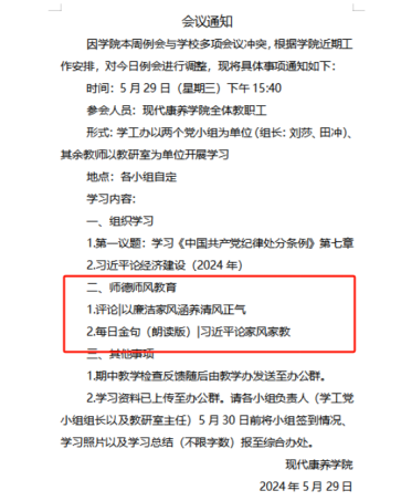 同时,学院开展了家风家教宣传活动,组织各教研室及学工支部党小组开展学习,并提交相关学习总结。家风、家训是我国传统文化和教育的重要组成部分,也是一个家族代代传承的行为准则。通过组织学习,引导教职工重视家庭建设,注重家庭、注重家教、注重家风,率先垂范,做良好家风示范者、传承者、守护者。