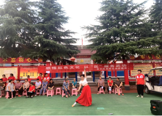 仪式结束后,实践团在营上村活动广场开展志愿服务活动,不仅为老人们进行血压测量、按摩推拿以及艾灸等方面的服务,还为村民奉上精心准备的节目,并赠送自制手工皂。