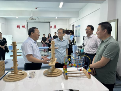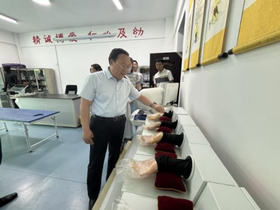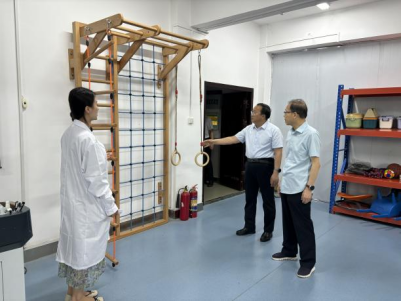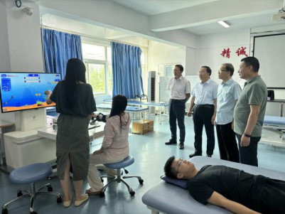 李建清一行首先参观了学校OT实训室、ST评定康复心理实训室、儿童康复实训室、PT实训室和针灸推拿实训室等,体验了脉诊仪等中医传统诊疗特色技术和上肢功能训练系统等现代康复治疗技术项目,实地了解学校康复治疗技术专业的教学体系、专业特色、人才培养、师资力量等相关情况。