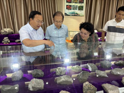 最后,参观学校地质陈列室的各类矿物标本、古生物化石、典型岩矿心,了解地球地质基础、陕西省煤炭资源分布概况、多彩岩矿石的结构等,对我校科普基地的建设给予了高度的肯定。