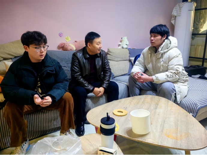 检查过程中,唐恭贺一行深入实习生住宿点重点对学生住宿环境的卫生情况、消防安全、饮食安全、用电安全、用气安全、交通安全等进行了专项检查,详细了解实习生的生活、学习和工作情况。每到一处,都对实习生进行慰问并与实习生亲切交谈,询问他们在实习过程中遇到的困难和问题,特别强调了实习工作中安全操作流程和住宿安全的重要性,提醒同学们时刻保持安全意识、保持宿舍通风、整洁,同时针对住宿存在的不足之处,现场提出了整改意见,要求同学及时整改。学生对老师们的来访表示感谢,并表示他们会牢记叮嘱,树立安全思想,加强各项安全防范,严格遵守实习单位的各项规章制度。