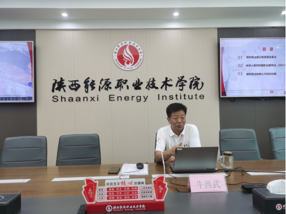 牛西武作了“学习新职业教育法,了解新时代中国特色职业教育”的专题报告,对职业教育的发展历程及新职业教育法的内涵、意义做了深刻解读,帮助青年教师全面认识新时代职业教育发展面临的新形势、新要求,为党育人,为国育才,做到七个坚持,更好地践行深化产教融合、校企合作,培养高素质技术技能人才。
