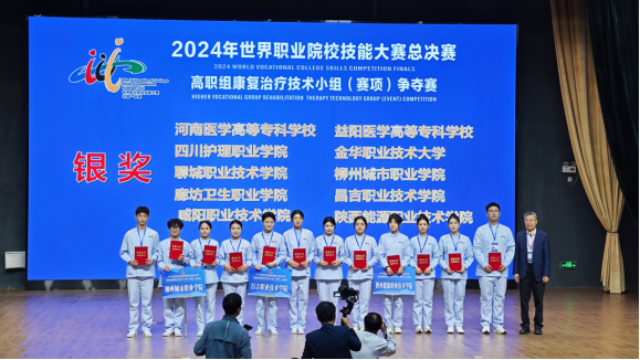 2024年10月29日至31日,2024年世界职业院校技能大赛总决赛争夺赛高职组“康复治疗技术”赛项在湖北职业技术学院举行。来自全国29个省(自治区、直辖市和新疆生产建设兵团)的58支队伍参赛。我校现代康养学院教师刘琼、刘曼婷指导,程文婷、相淼蕾、齐亭喻、何沐阳、易绿洲等5名学子组成的参赛队,以精湛的技术、优异的表现取得银奖。
